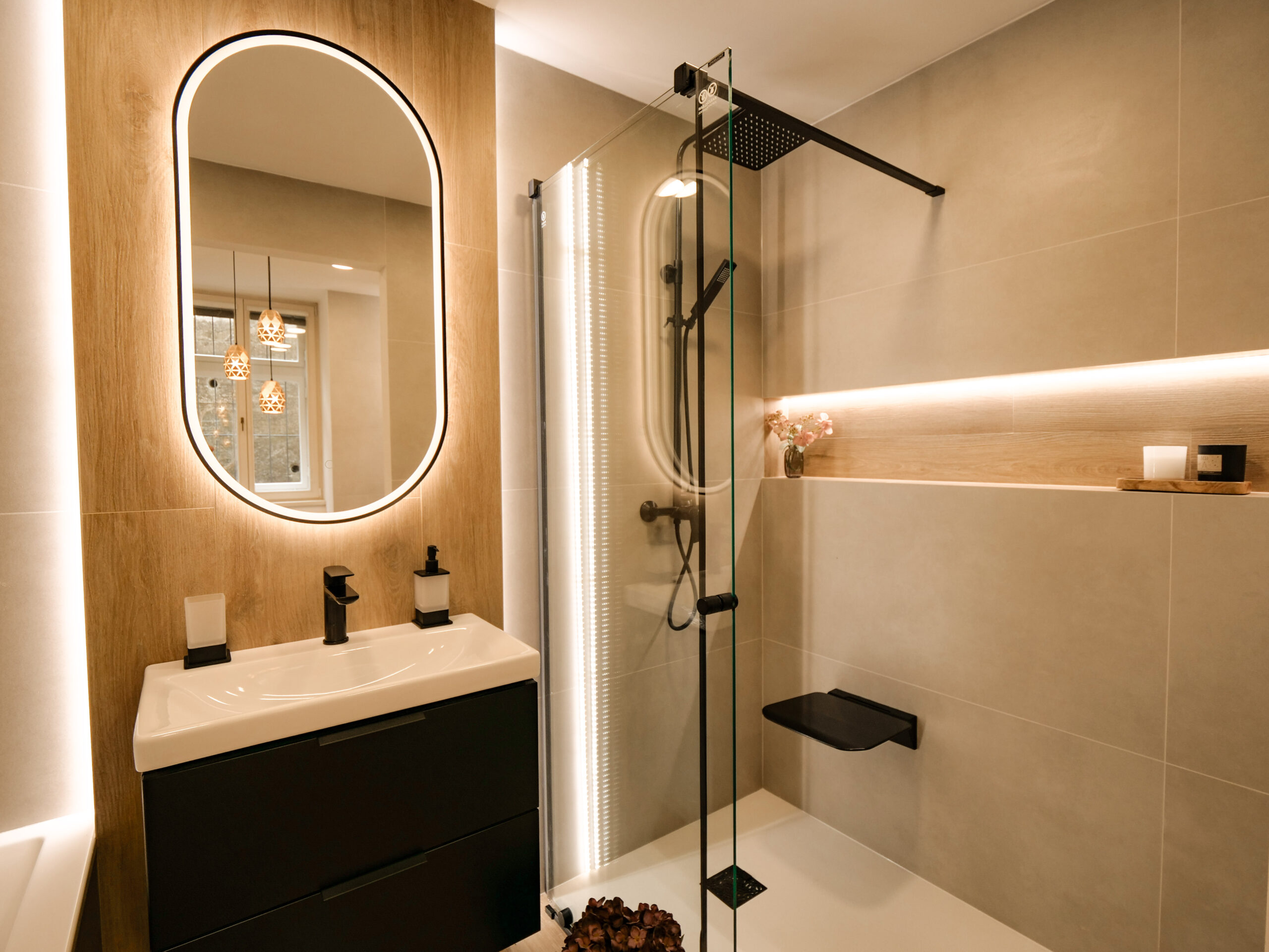 Inspirativní studio: Vysoce funkční a přitažlivé vzorové koupelny, které ukazují širokou paletu možností – od minimalistických a moderních designů po luxusní řešení s LED osvětlením a velkými plochami dlažeb a zrcadel.